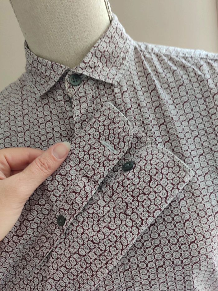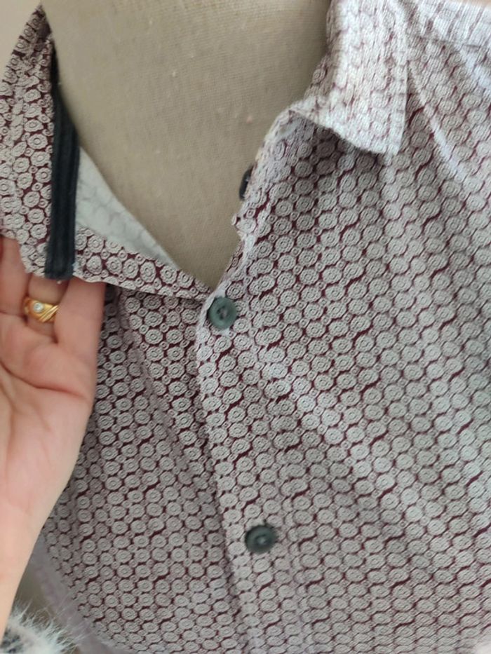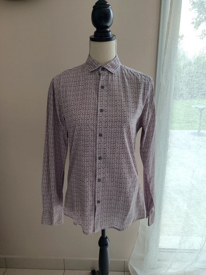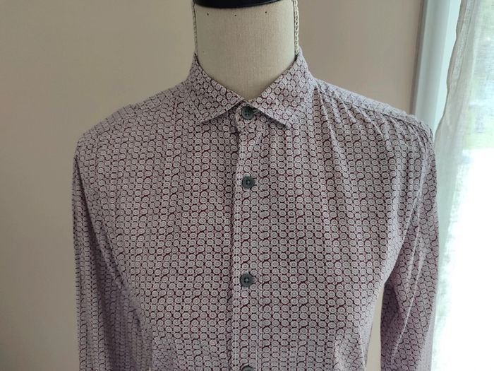 Belle chemise à motifs bordeaux. Cintrée dans le dos. Composition : 100% coton. Chemise en excellent état 🚭 Maison non fumeur N' hésitez pas à visiter mon dressing, il est listé par # dans mon descriptif. #nerimahommes #devred