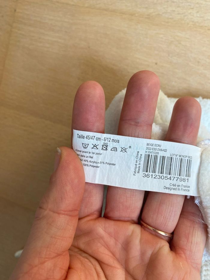 Bonnet blanc Taille 6-12mois Marque bout chou Bon état quelques peluches