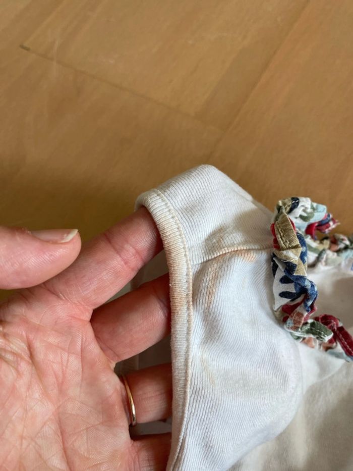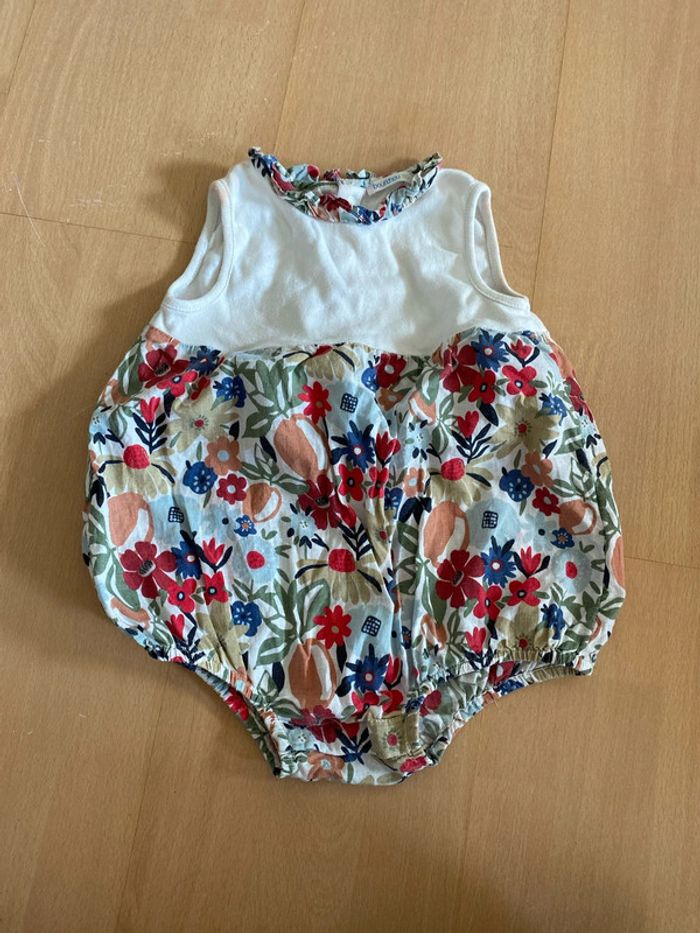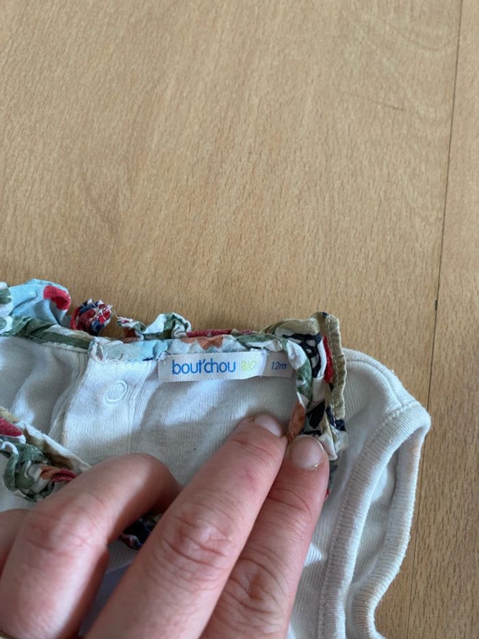 Grenouillère fleur Taille 12 mois Marque bout chou Bon état tache au niveau de l’épaule que je n’arrive pas à enlever