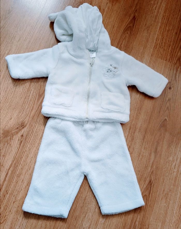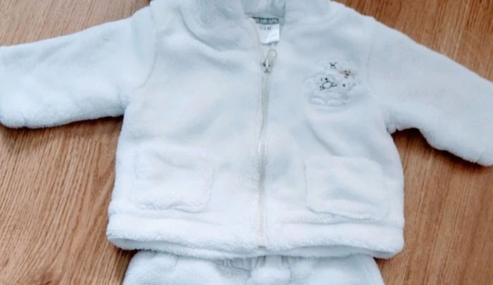 Ensemble bébé 3/6 mois : un gilet zippé assorti au pantalon. Couleur blanche mixte Tissu très doux et très chaud 💭 #campap77vêtementbébé