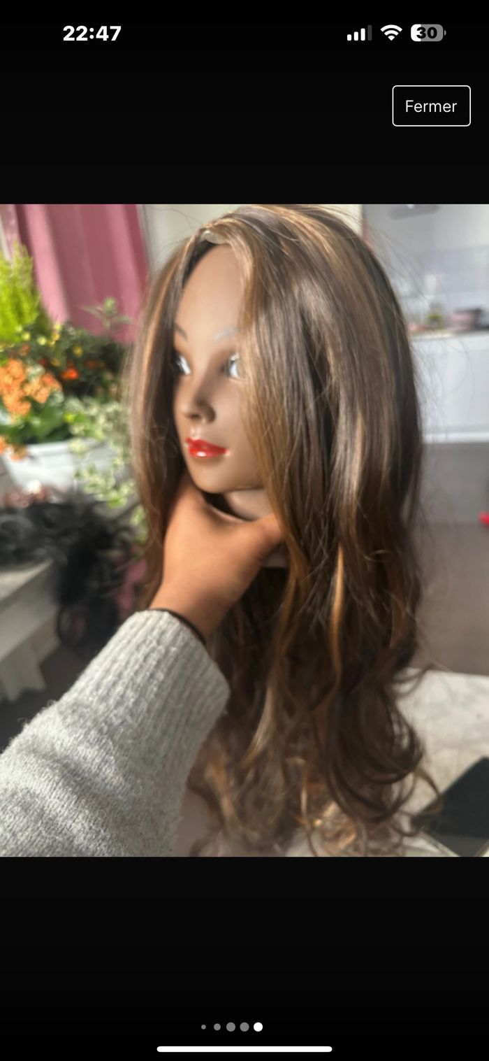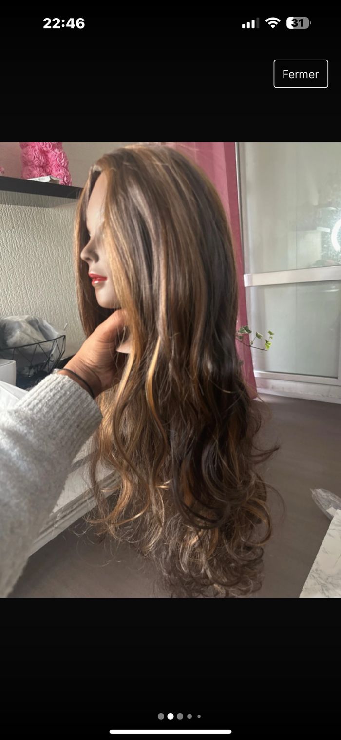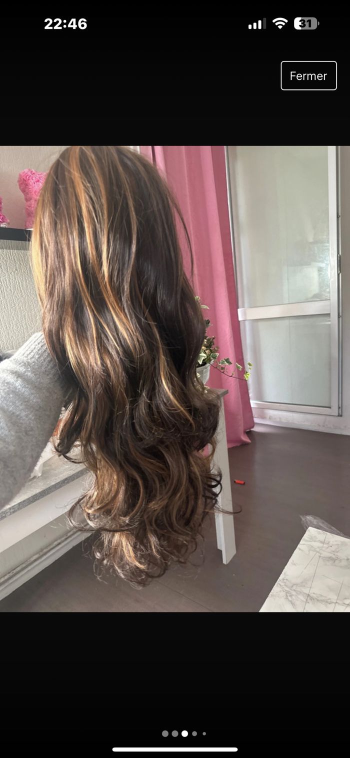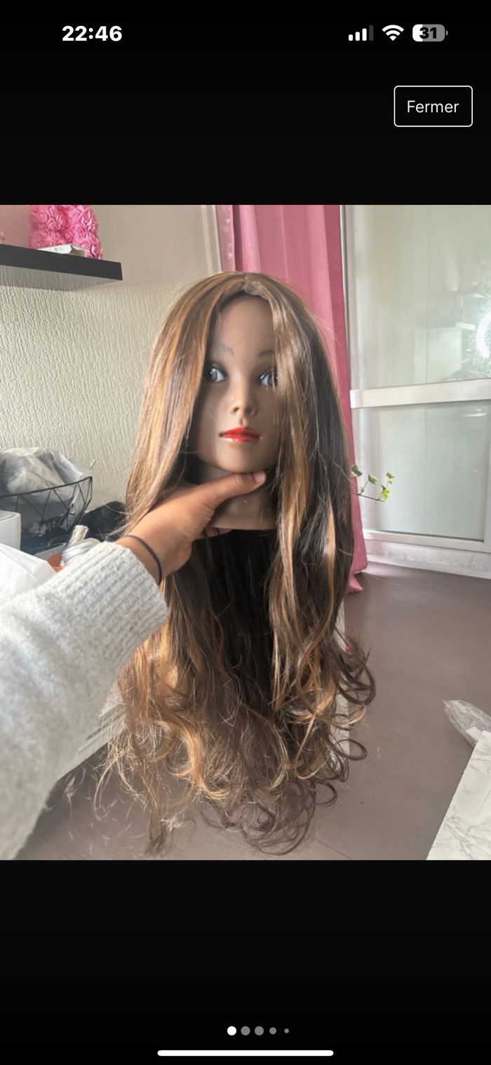 Superbe perruque ondulés en dentelle lacé front, 28 pouces de longueur . Fibre de cheveux synthétique haute qualités effet naturel et résistant à la chaleur on peut la lisser et la laver avec shampooing . Facile à mettre , tour de tête réglables -conforme au photos neuf -Prix bas car je vous fait déjà une réduction -envoie rapide même jour ou lendemain
