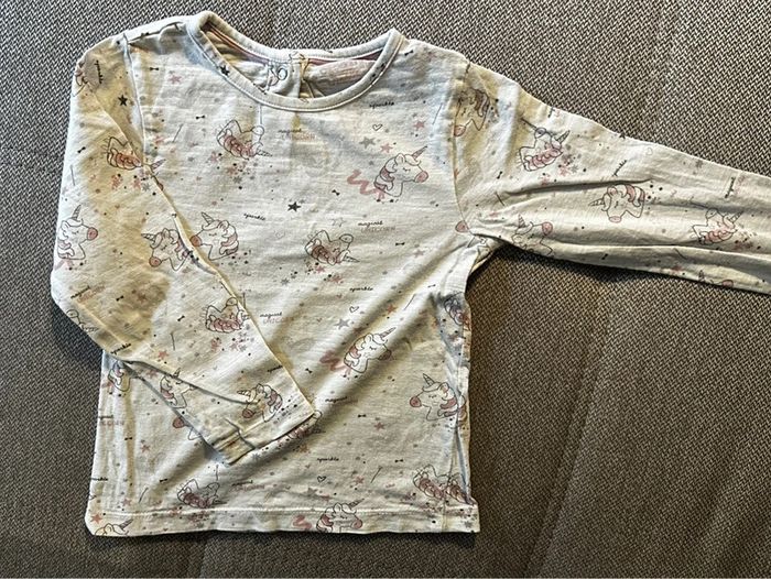 T-shirt à manches longues de couleur blanc, avec motifs licornes 🦄 Taille 23 mois