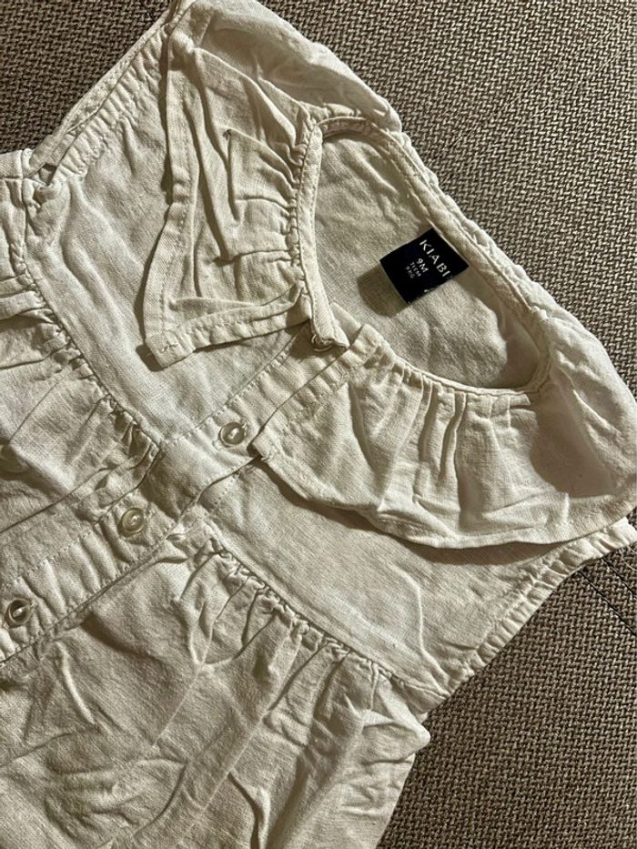 Joli petit chemisier sans manches de couleurs blanche Très bon état Taille 9 mois