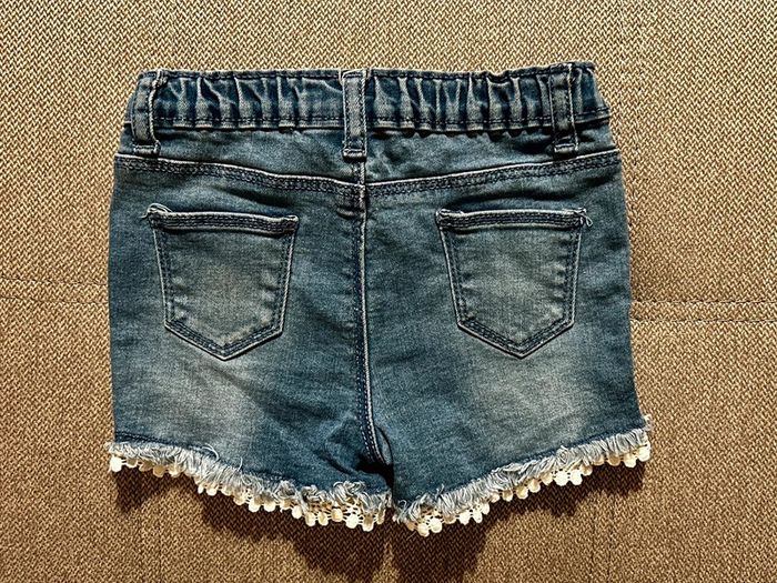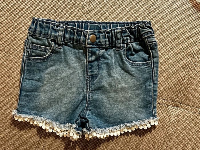 Short en jean, de couleur bleu bordé dentelle. Tout mignon. Très peu porté. Taille 9-12 mois