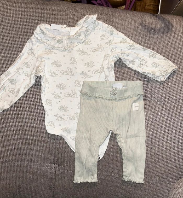 Ensemble body imprimé Bambi + legging vert côtelé Taille 9 mois