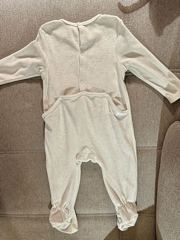 Pyjama, une pièce matière pilou de couleur blanc. Avec de jolies fleurs, Fermeture par pressions dos. Taille 18 mois