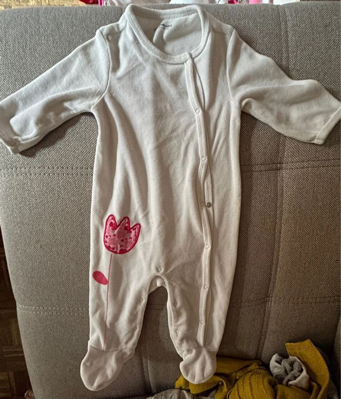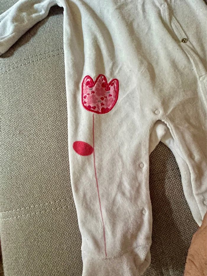 Pyjama une pièce boutonnage devant de couleur blanche avec une tulipe rose Taille 6 mois