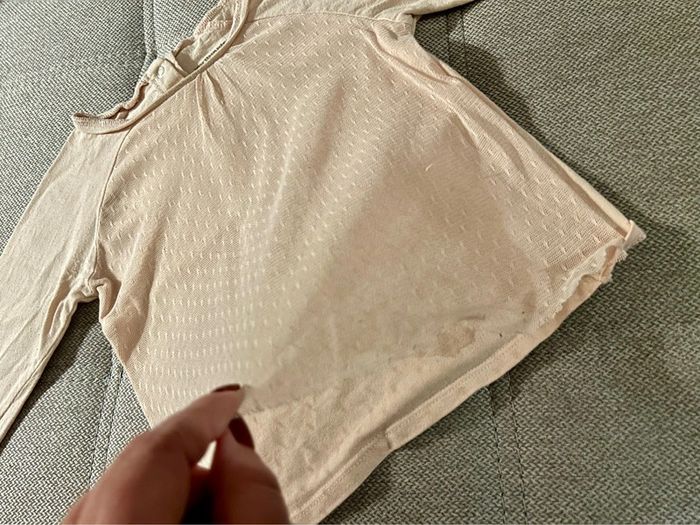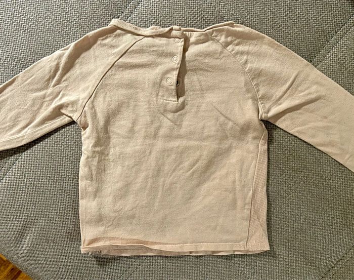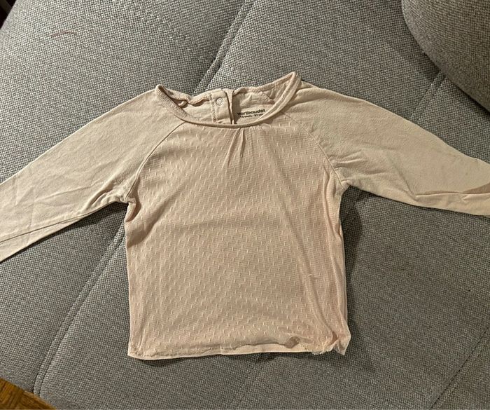 T-shirt à manches longues de couleur rose clair. Avec une doublure de type voile devant Taille 18 mois.