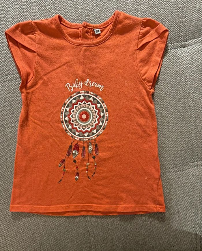 T-shirt long de couleur corail avec un joli attrape-reves Taille 18 mois