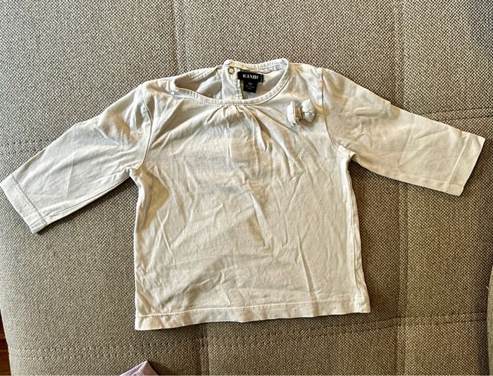 T-shirt, à manches longues, 100 % coton, de couleur blanche. Avec un petit nœud Taille 9 mois