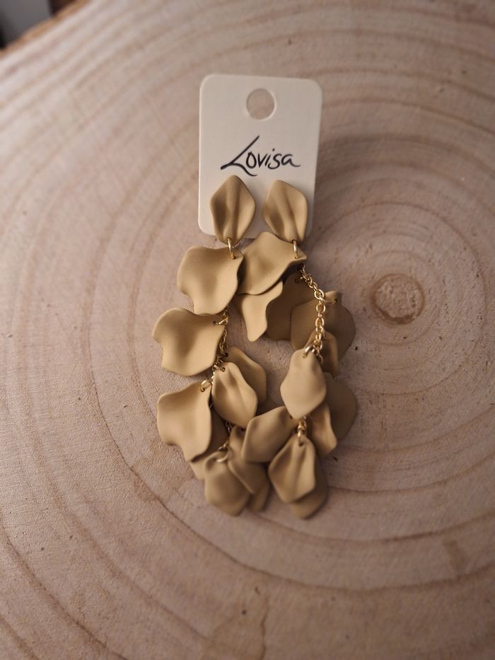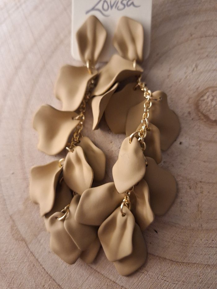 Boucles d'oreilles pendantes pétales de fleur taupe - photo numéro 1