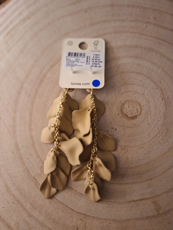 Boucles d'oreilles pendantes pétales de fleur taupe - photo numéro 3