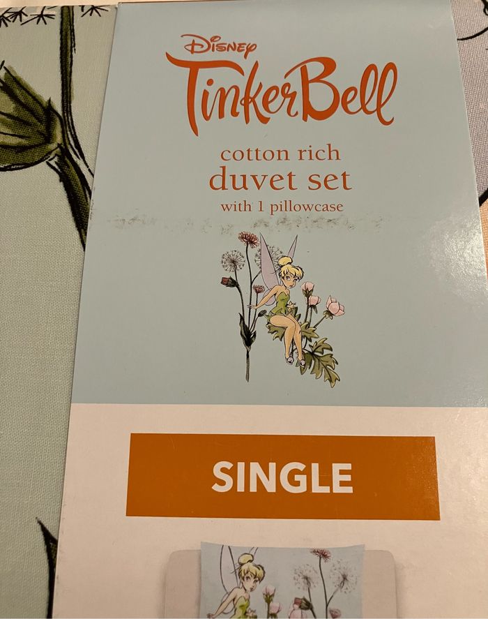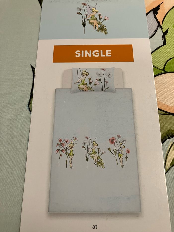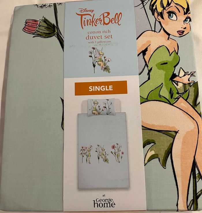 Sublime parure de couette motif clochette (tinkerbell) Taille single pour lit 1 personne Neuve jamais déballée Idéal cadeau Non commercialisée en France Non négociable Envoi rapide et soigné