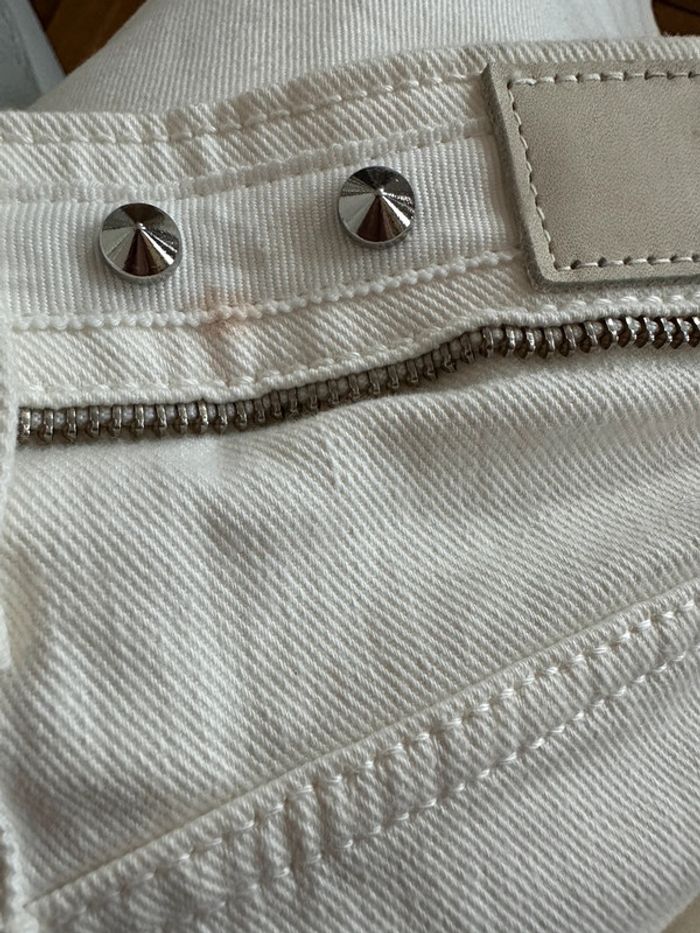 Jupe jeans Zadig et Voltaire ( joy spikes) T:36 couleur crème. Elle a une petite tache ( voir dernière photo) elle n’a pas été lavée elle est neuve