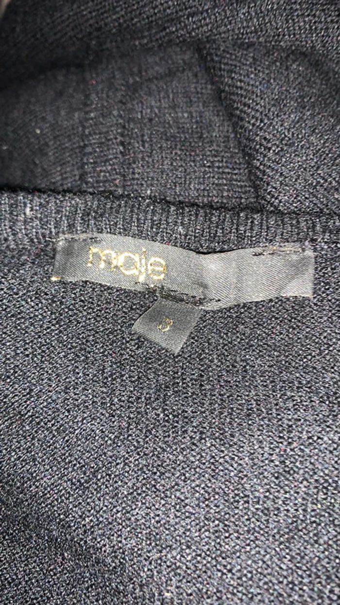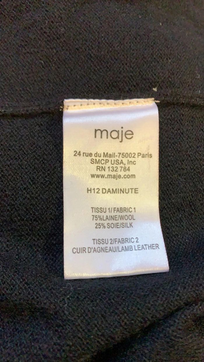Gilet Maje laine / soie / cuir agneau T:3 noir