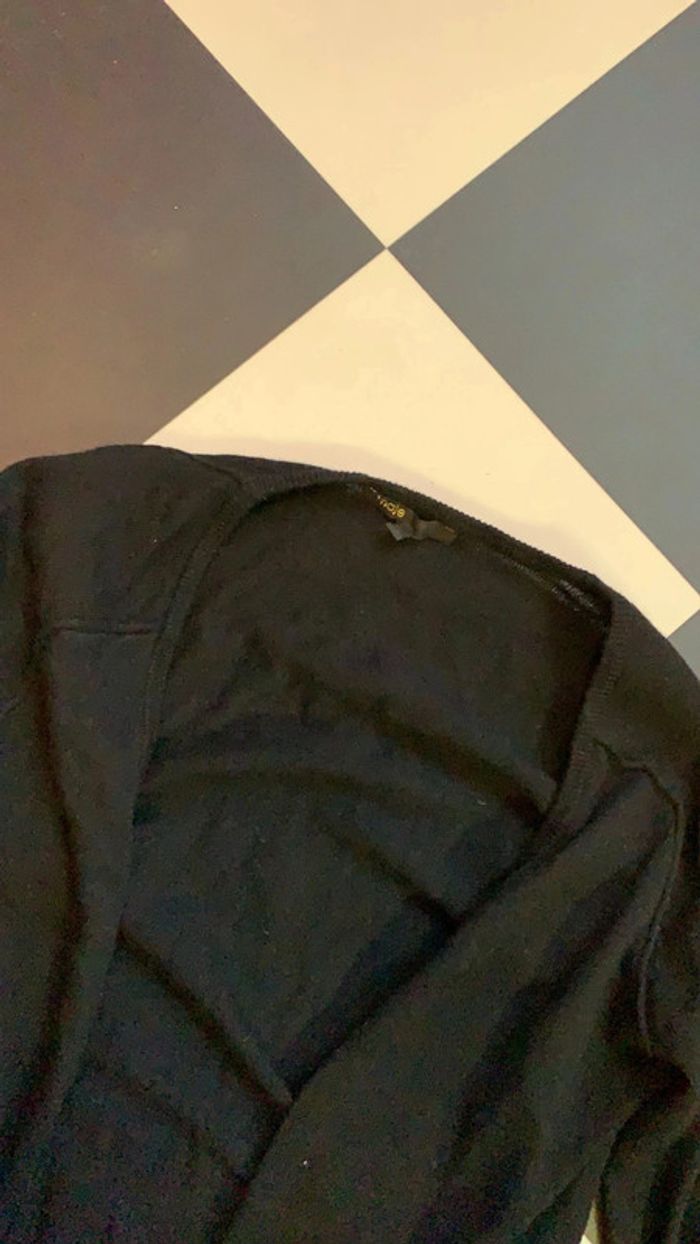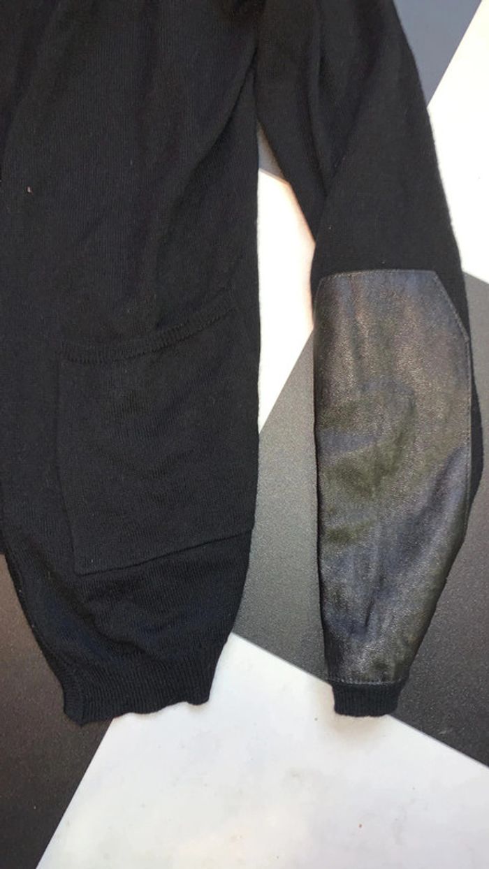 Gilet Maje laine / soie / cuir agneau T:3 noir - photo numéro 5