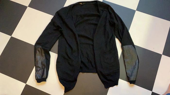 Gilet Maje laine / soie / cuir agneau T:3 noir - photo numéro 1