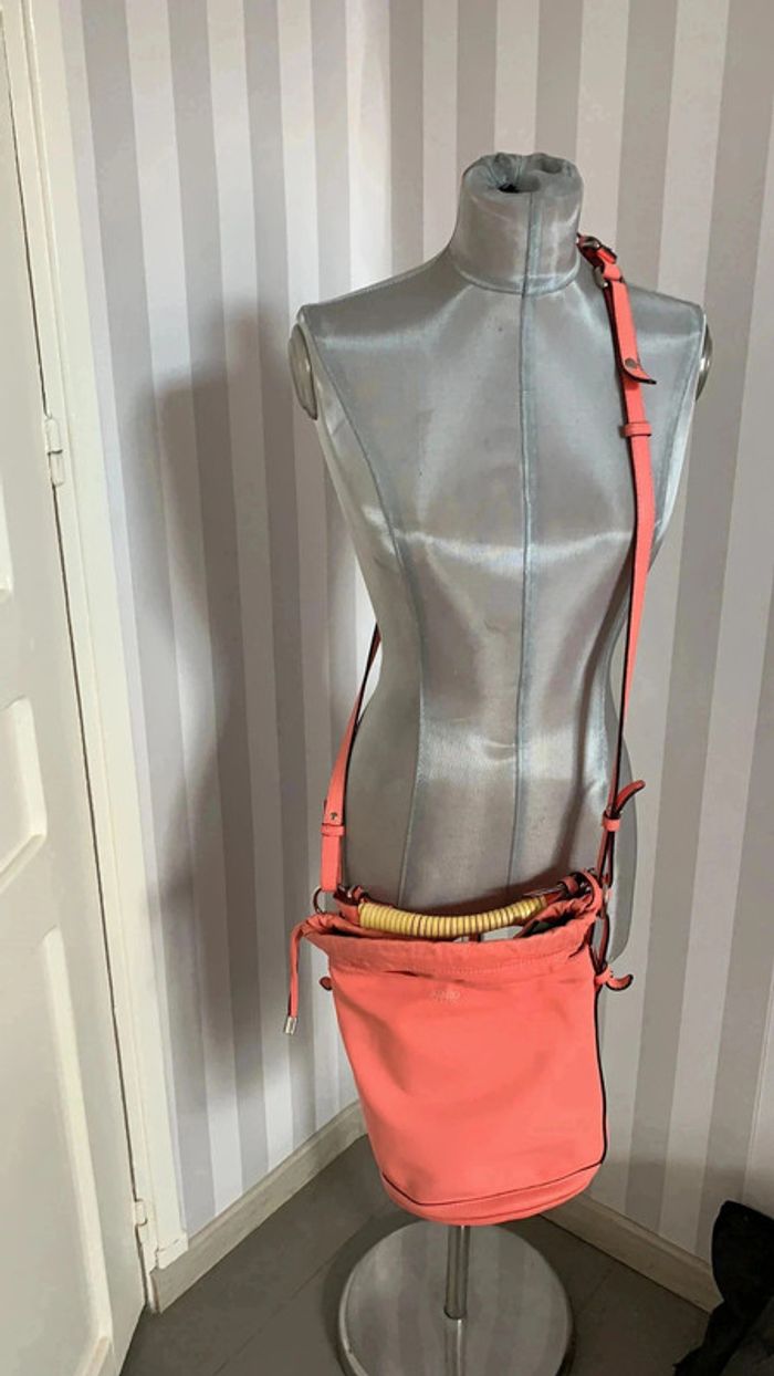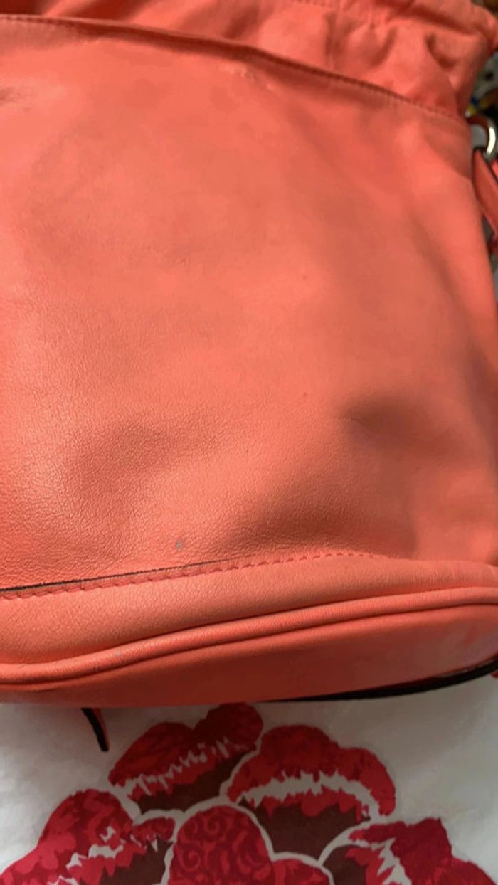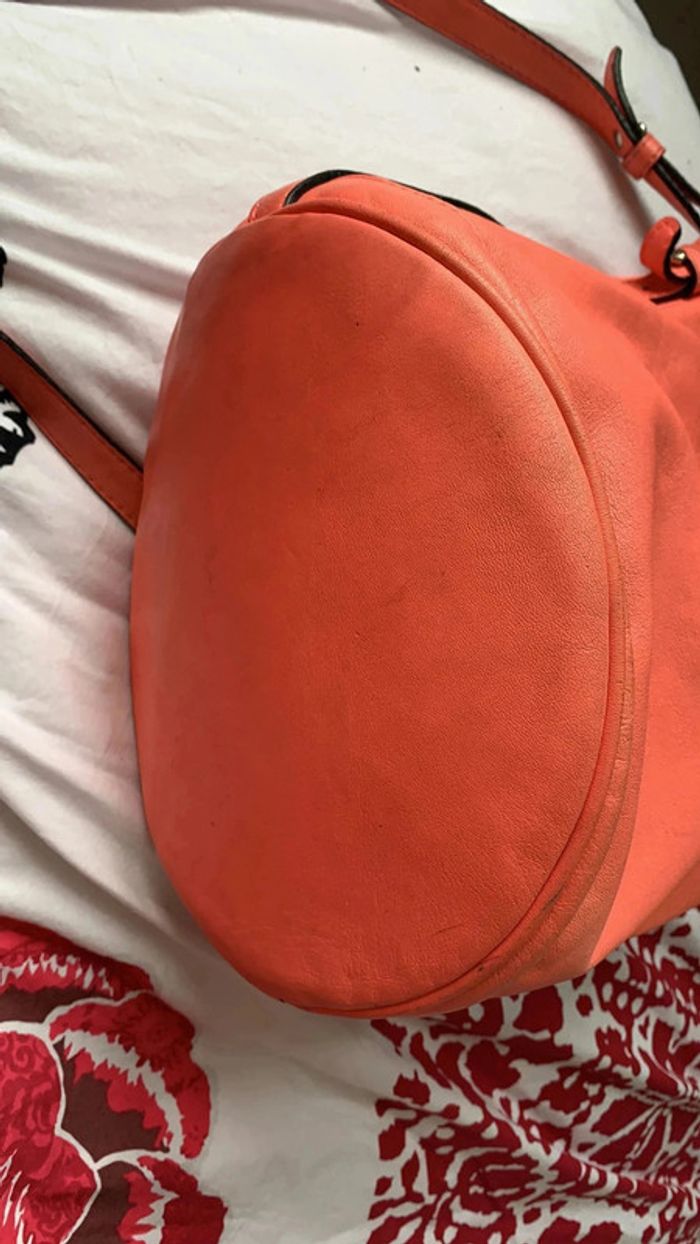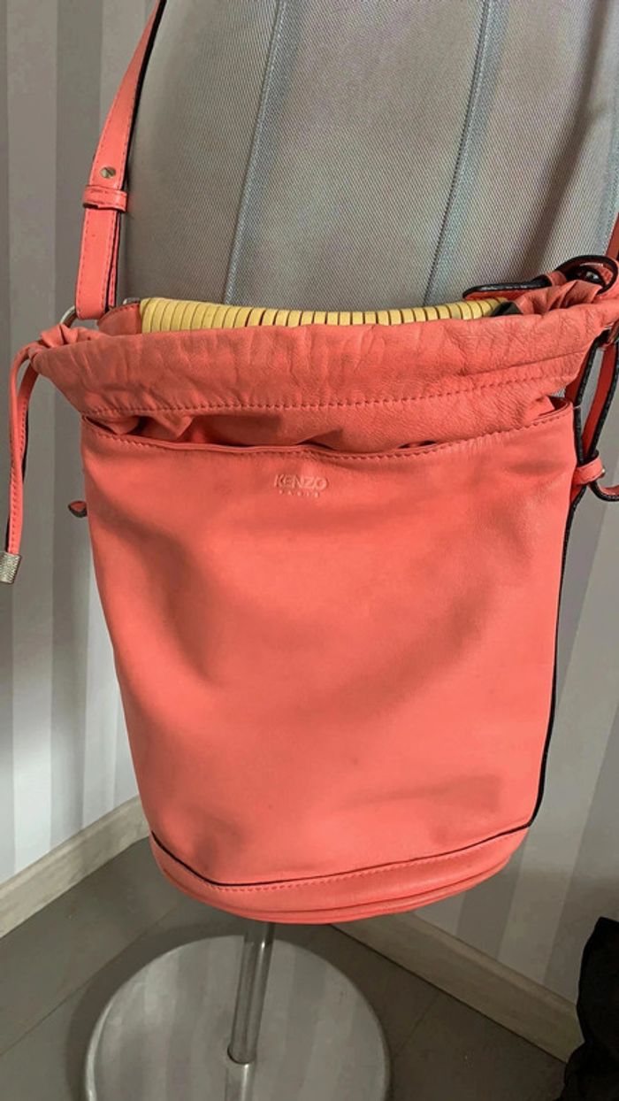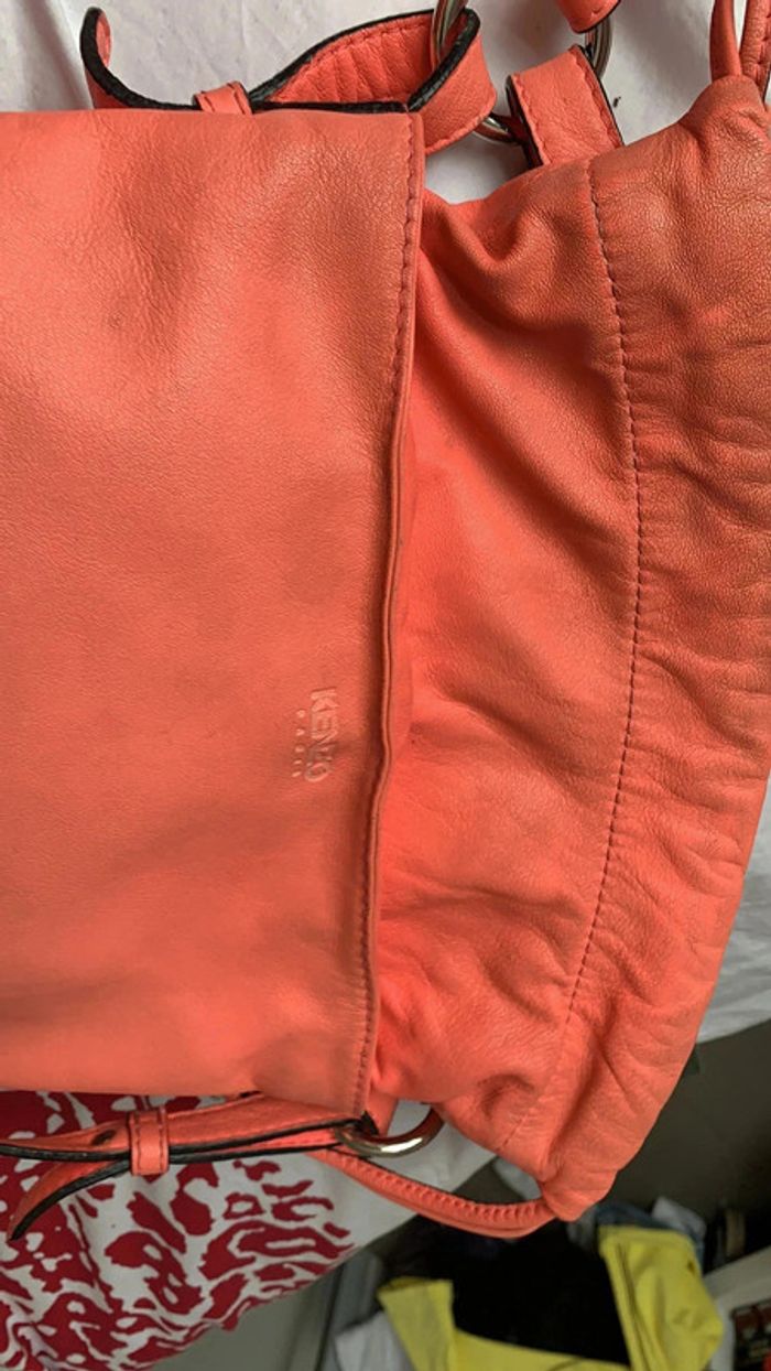 Sac seau Kenzo orange fluo. il a très petites traces voir photos , il est léger , un très beau cuir souple. 27 cm de hauteur