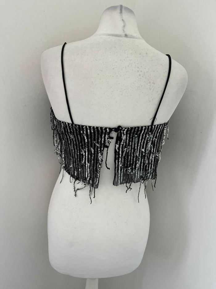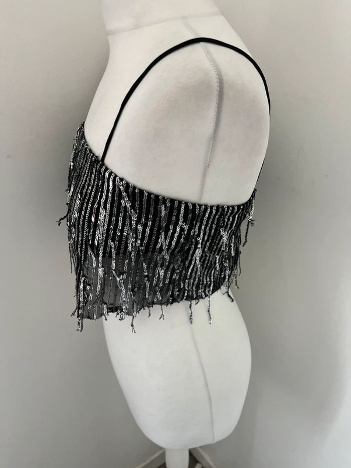 Vends joli top à bretelles Zara Noir avec fils à sequins argentés Court Taille S #loumathifemmes #loumathizara #loumathiblouse 🌸 envoi rapide et soigné (Sous 48h ouvrées) 🌸 n’hésitez pas à faire un tour dans mon dressing pour voir mes autres pièces et faire des lots 🌸 n’hésitez pas à vous abonner à mon compte Vinted car j’ajoute des articles régulièrement