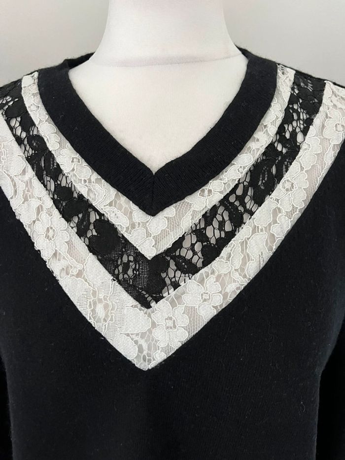 Vends joli pull The Kooples Noir avec col V avec dentelle blanche et noire Laine et cachemire Taille 1 #loumathikooples #loumathifemmes #loumathipull 🌸 envoi rapide et soigné (Sous 48h ouvrées) 🌸 n’hésitez pas à faire un tour dans mon dressing pour voir mes autres pièces et faire des lots 🌸 n’hésitez pas à vous abonner à mon compte Vinted car j’ajoute des articles régulièrement