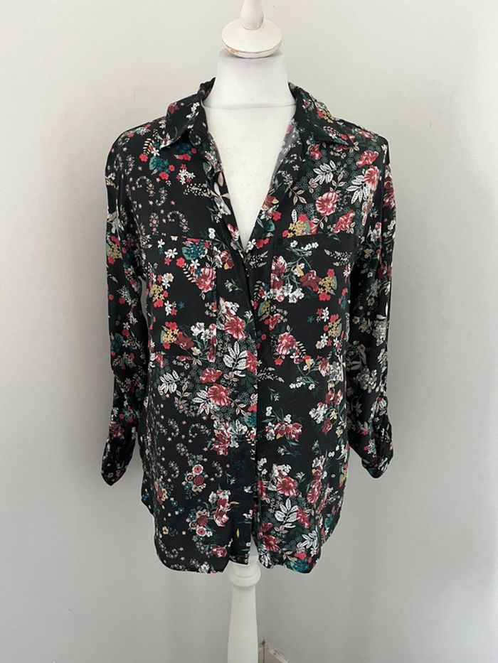 Chemisier noir à fleurs Promod S - photo numéro 1
