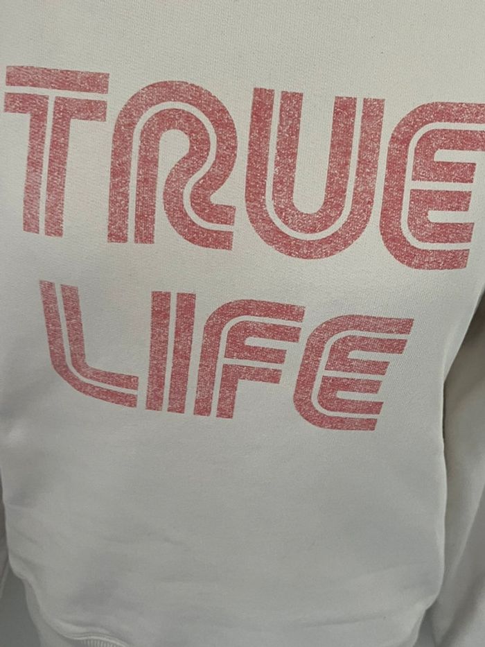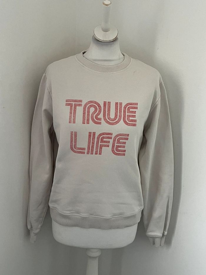 Vends joli sweat Blanc cassé Bash Écriture rose true life Taille 0 #loumathibash #loumathipull #loumathifemmexs 🌸 envoi rapide et soigné (Sous 48h ouvrées) 🌸 n’hésitez pas à faire un tour dans mon dressing pour voir mes autres pièces et faire des lots 🌸 n’hésitez pas à vous abonner à mon compte Vinted car j’ajoute des articles régulièrement