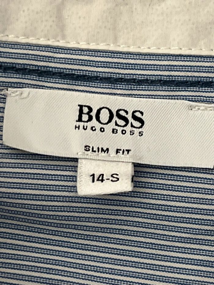 Vends jolie chemise Boss Rayée bleu blanc Col blanc Taille 14 ans #loumathigarconquatorzeans #loumathichemise