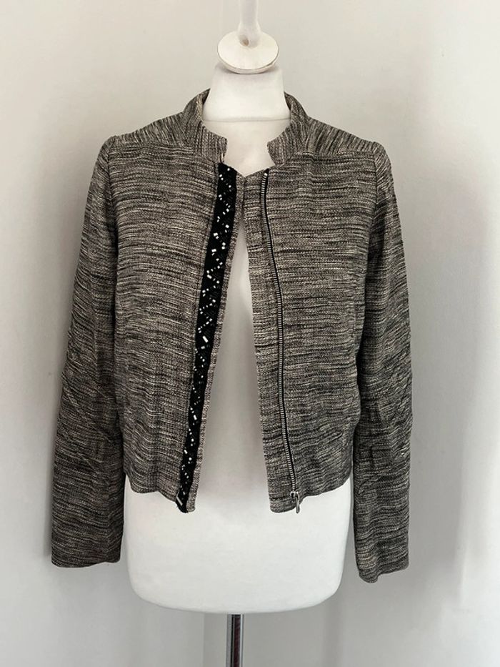 Veste tweed chinée gris et perles Maje S - photo numéro 1