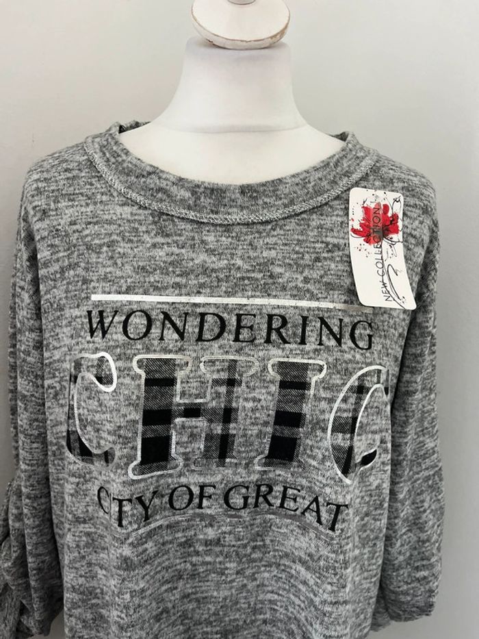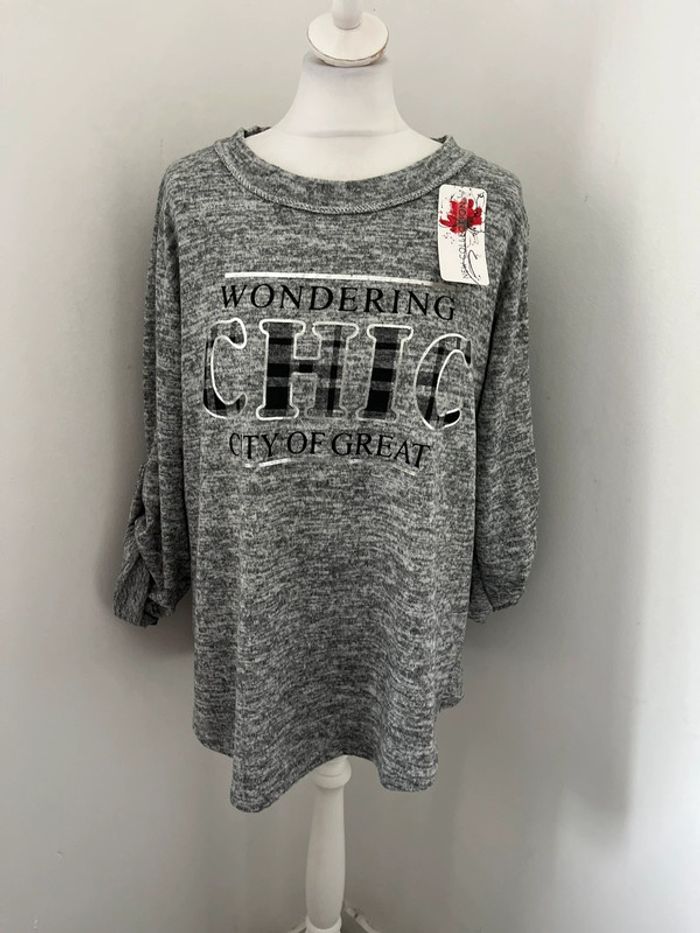 Blouse gris chiné Made in Italy M neuve - photo numéro 2