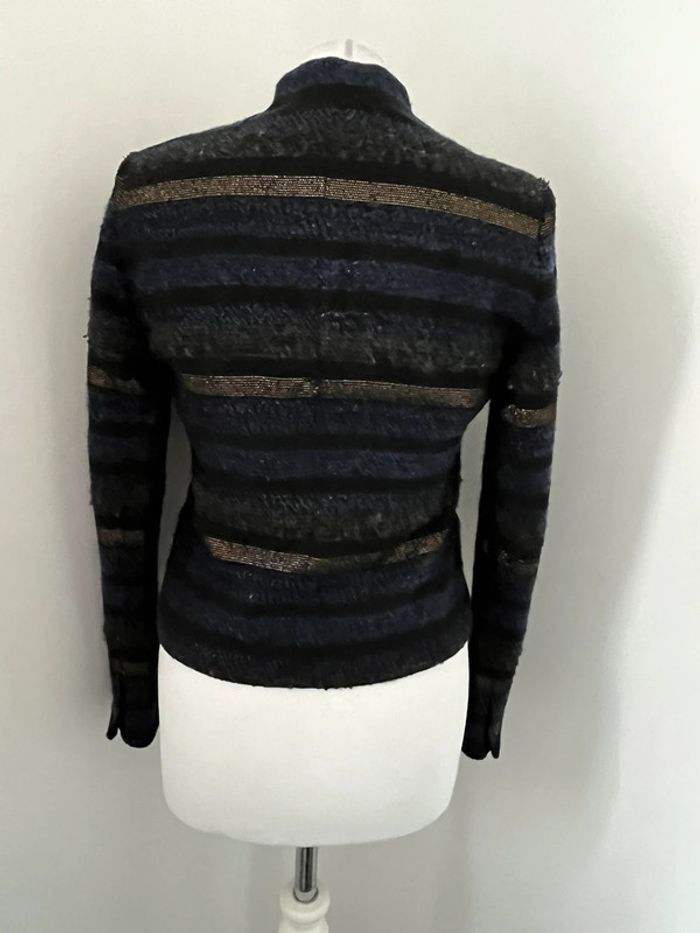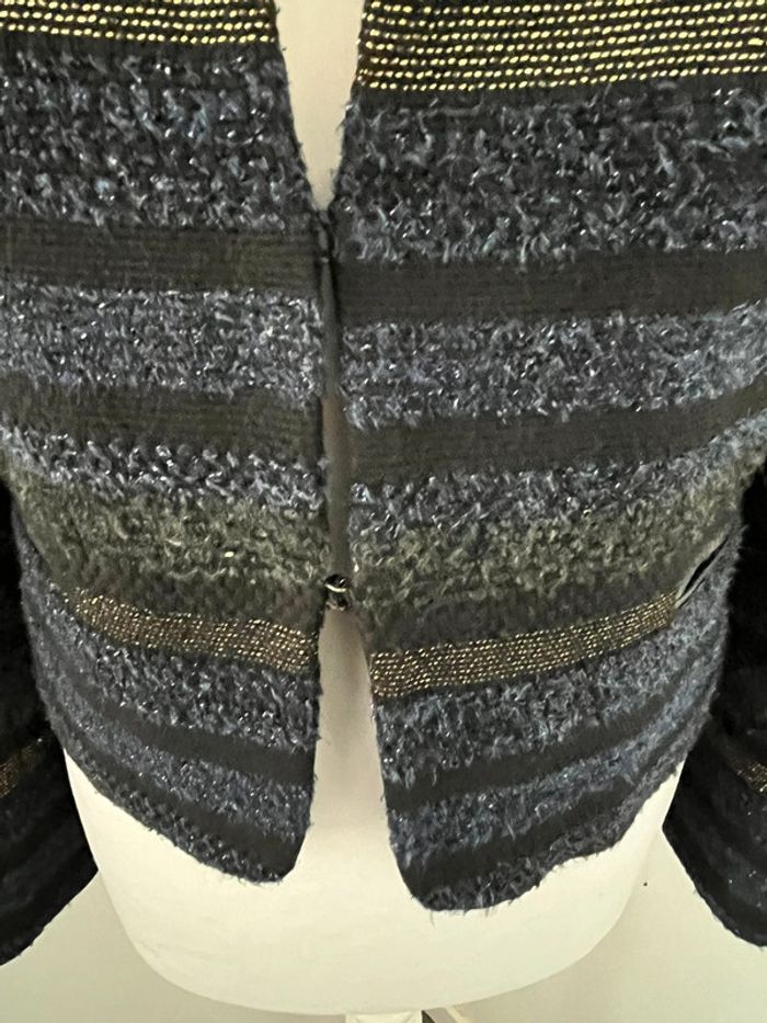 Vends joli blazer Sandro Tweed Rayée bleu gris noir et doré Taille 36 #loumathifemmes #loumathisandro #loumathiveste 🌸 envoi rapide et soigné (Sous 48h ouvrées) 🌸 n’hésitez pas à faire un tour dans mon dressing pour voir mes autres pièces et faire des lots 🌸 n’hésitez pas à vous abonner à mon compte Vinted car j’ajoute des articles régulièrement