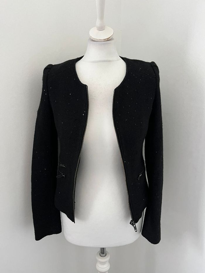 Veste blazer noire tweed et sequins Ikks XS - photo numéro 1