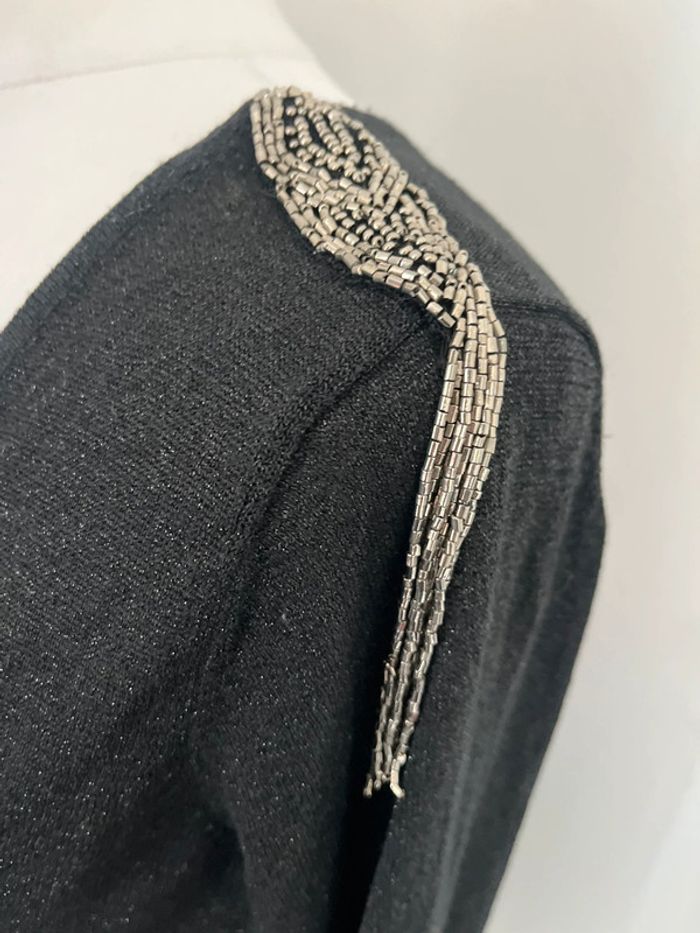 Pull noir et perles argentées Zara M - photo numéro 2