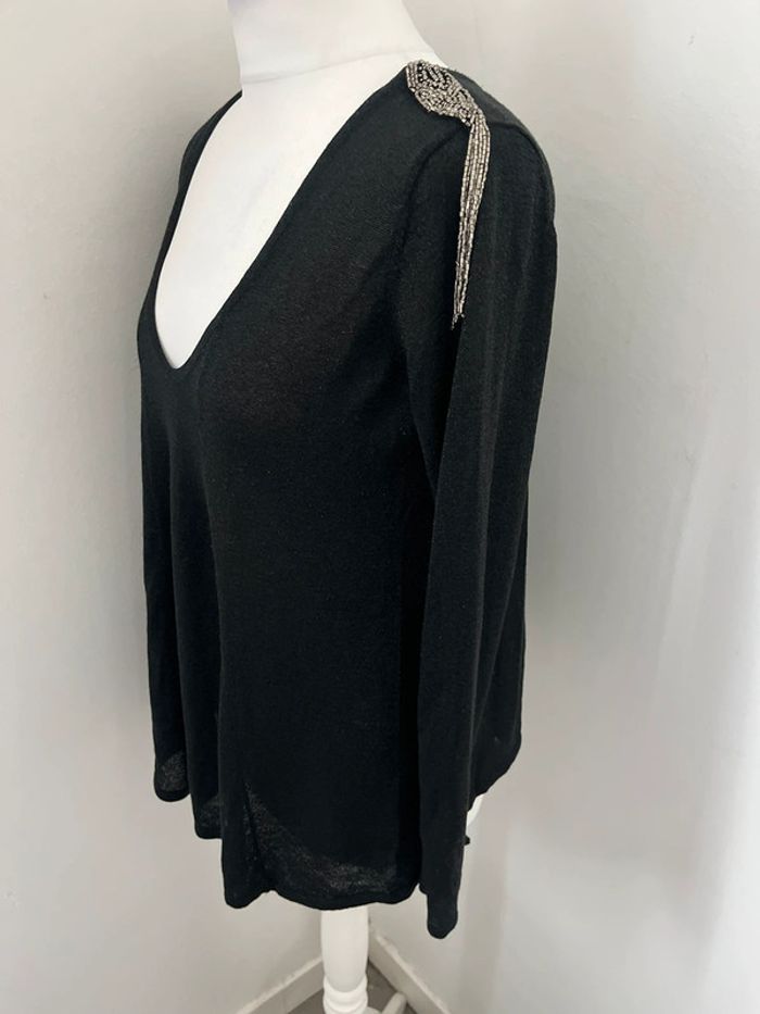 Pull noir et perles argentées Zara M - photo numéro 3