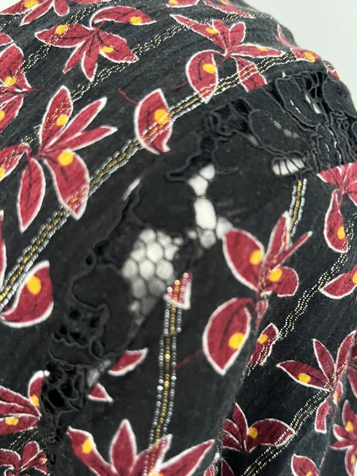 Vends jolie robe Ikks Noire avec fleurs bordeaux et jaune Fils argentés et dorés Cintrée par un cordon Doublée Taille 36 #loumathiikks #loumathirobe #loumathifemmes 🌸 envoi rapide et soigné (Sous 48h ouvrées) 🌸 n’hésitez pas à faire un tour dans mon dressing pour voir mes autres pièces et faire des lots 🌸 n’hésitez pas à vous abonner à mon compte Vinted car j’ajoute des articles régulièrement