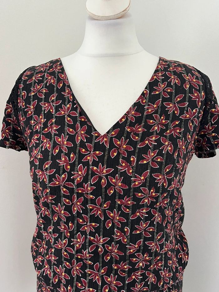 Robe noire à fleurs bordeaux Ikks S - photo numéro 6