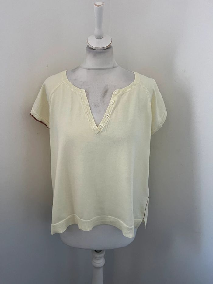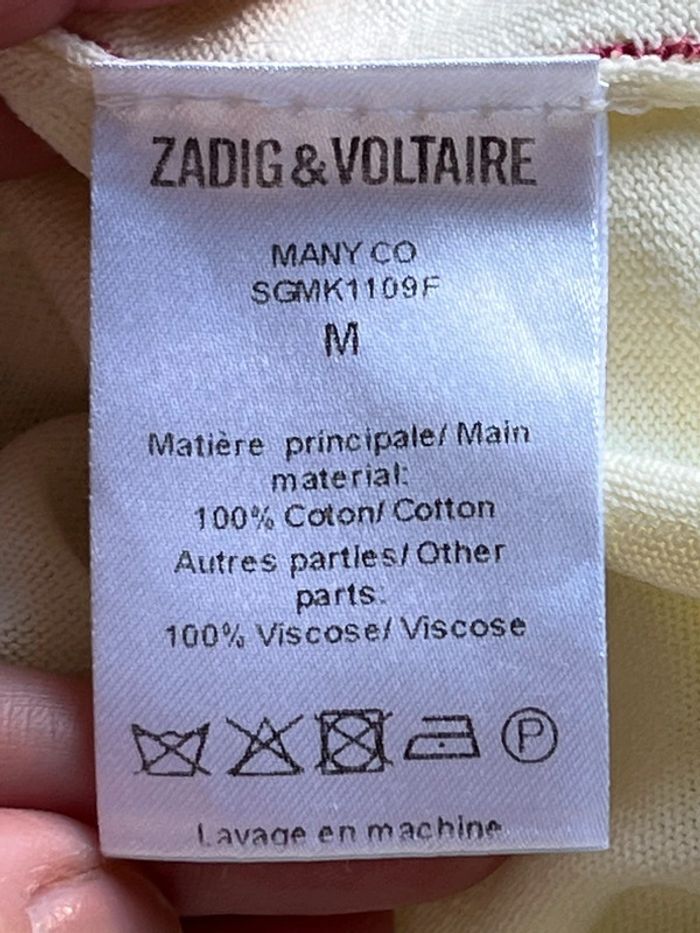 Vends jolie blouse Zadig et Voltaire Jaune pale avec liserer bordeaux sur les manches et l’arrière du col Col en V avec boutons tête de mort Taille M Parfait état #loumathifemmem #loumathizadigetvoltaire #loumathiblouse 🌸 envoi rapide et soigné (Sous 48h ouvrées) 🌸 n’hésitez pas à faire un tour dans mon dressing pour voir mes autres pièces et faire des lots 🌸 n’hésitez pas à vous abonner à mon compte Vinted car j’ajoute des articles régulièrement