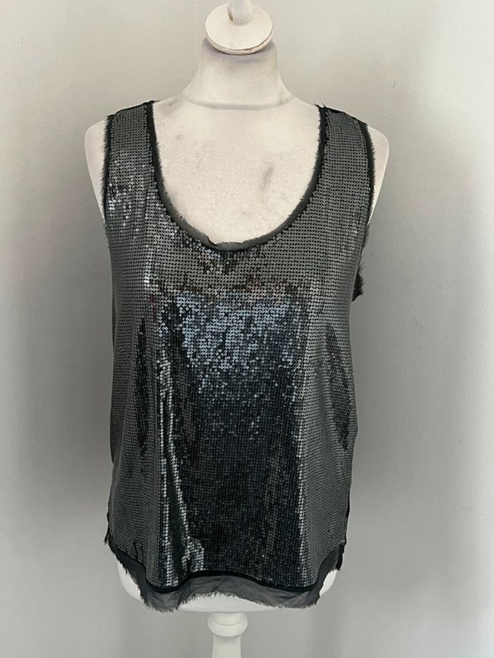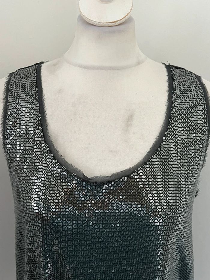 Vends joli top Zara Sequins argentés devant Dos gris foncé Taille M Peu porté #loumathifemmem #loumathizara #loumathiblouse 🌸 envoi rapide et soigné (Sous 48h ouvrées) 🌸 n’hésitez pas à faire un tour dans mon dressing pour voir mes autres pièces et faire des lots 🌸 n’hésitez pas à vous abonner à mon compte Vinted car j’ajoute des articles régulièrement