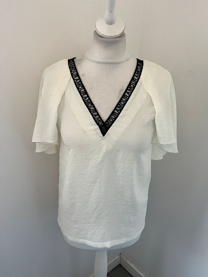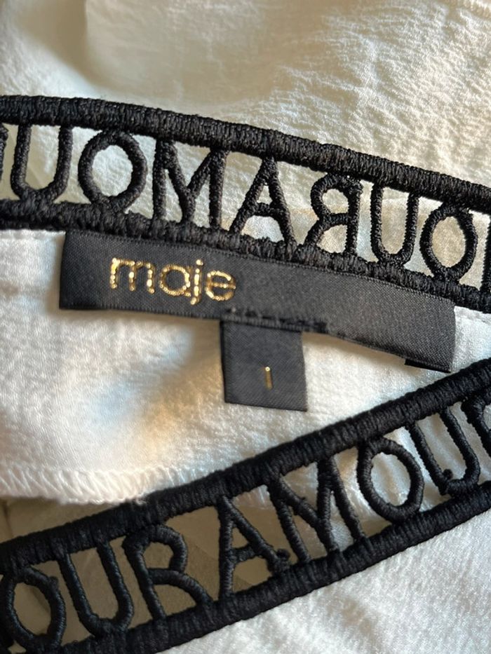Vends jolie blouse Maje Col V noir avec broderie amour Écrue Jolie ouverture dans le dos Taille 1 Peu portée #loumathimaje #loumathifemmes #loumathiblouse 🌸 envoi rapide et soigné (Sous 48h ouvrées) 🌸 n’hésitez pas à faire un tour dans mon dressing pour voir mes autres pièces et faire des lots 🌸 n’hésitez pas à vous abonner à mon compte Vinted car j’ajoute des articles régulièrement