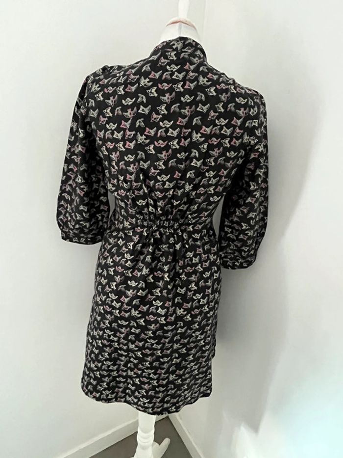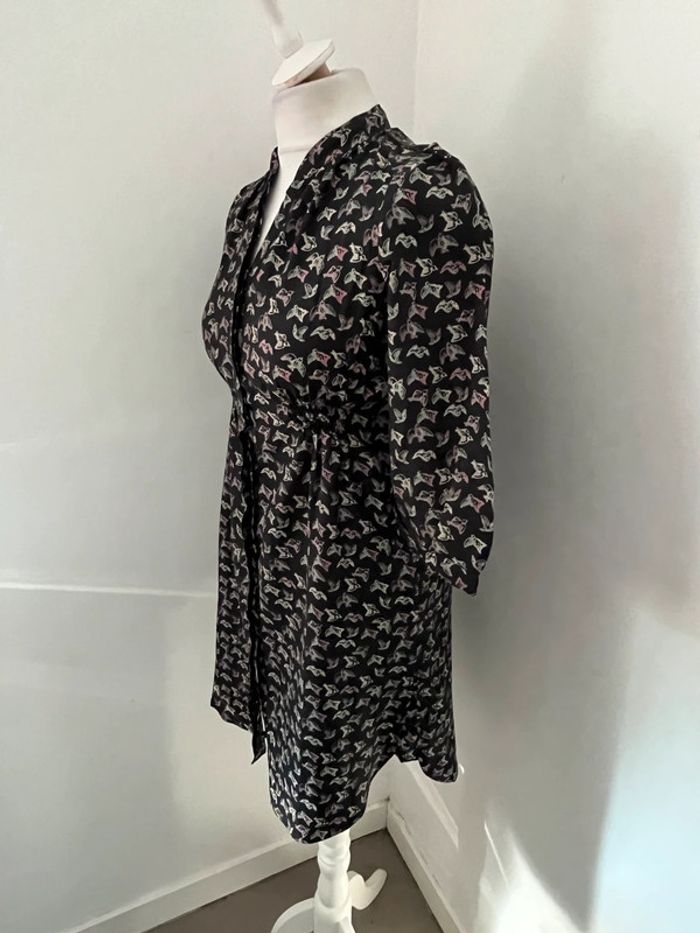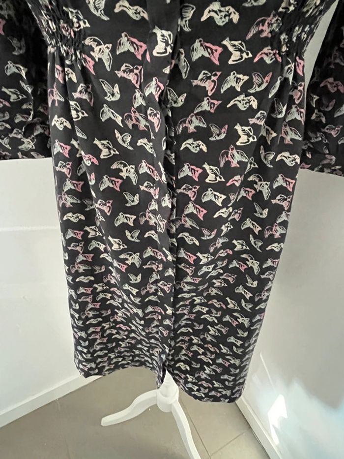 Vends jolie robe Maje Boutonnée avec boutons fantaisie Cintrée Noir gris avec motifs oiseaux Taille S #loumathifemmes #loumathirobe #loumathimaje 🌸 envoi rapide et soigné (Sous 48h ouvrées) 🌸 n’hésitez pas à faire un tour dans mon dressing pour voir mes autres pièces et faire des lots 🌸 n’hésitez pas à vous abonner à mon compte Vinted car j’ajoute des articles régulièrement
