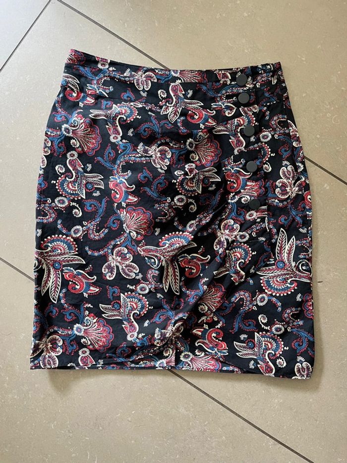 Vends jolie jupe Bash Noire à fleurs colorées Boutons noirs sur le côté Fendue devant Taille 1 Jamais portée #loumathifemmes #loumathijupe #loumathibash 🌸 envoi rapide et soigné (Sous 48h ouvrées) 🌸 n’hésitez pas à faire un tour dans mon dressing pour voir mes autres pièces et faire des lots 🌸 n’hésitez pas à vous abonner à mon compte Vinted car j’ajoute des articles régulièrement
