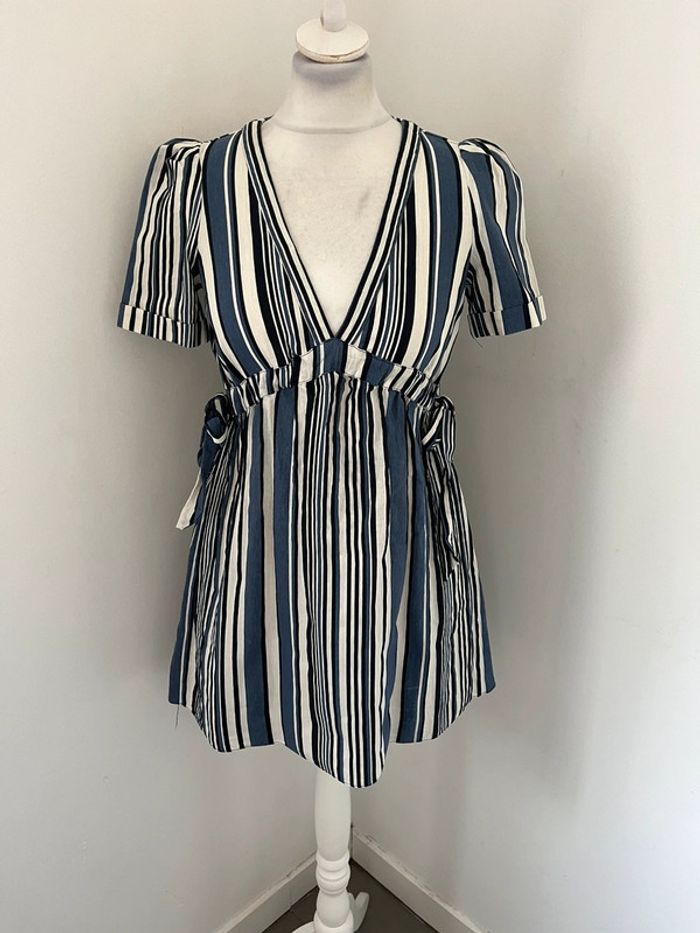 Vends jolie robe Zara Col en V Rayée Cintrée : elastiquée plus deux cordons de chaque coté Taille XS #loumathifemmexs #loumathirobe #loumathizara 🌸 envoi rapide et soigné (Sous 48h ouvrées) 🌸 n’hésitez pas à faire un tour dans mon dressing pour voir mes autres pièces et faire des lots 🌸 n’hésitez pas à vous abonner à mon compte Vinted car j’ajoute des articles régulièrement