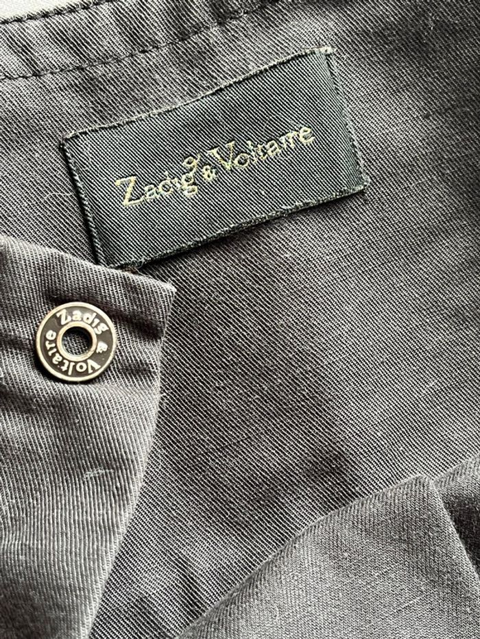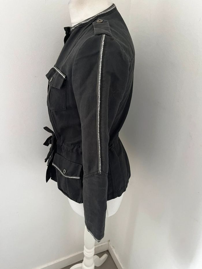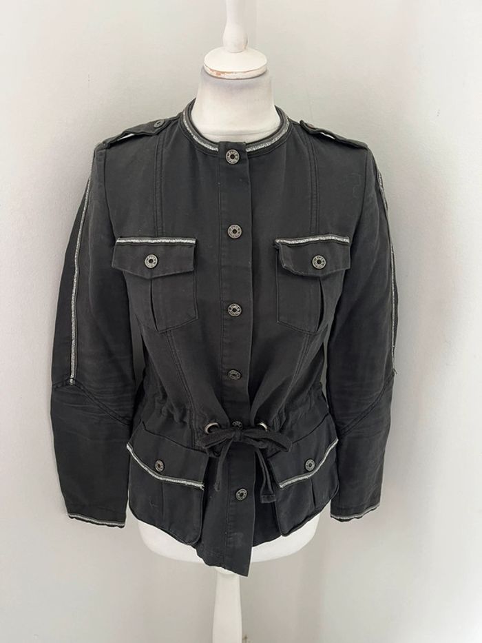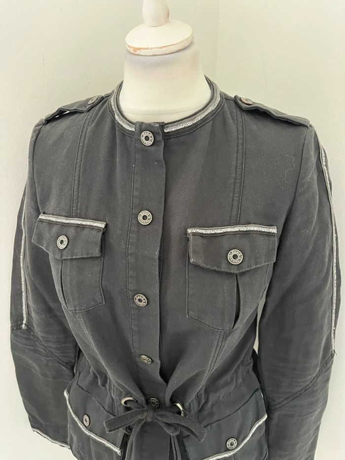 Vends jolie veste Zadig et Voltaire Ferme avec pressions noire avec liseré argentés sur le col, les manches et les poches Lin et coton Peut se cintrer grâce au cordon Taille 36 #loumathifemmes #loumathizadigetvoltaire #loumathiveste 🌸 envoi rapide et soigné (Sous 48h ouvrées) 🌸 n’hésitez pas à faire un tour dans mon dressing pour voir mes autres pièces et faire des lots 🌸 n’hésitez pas à vous abonner à mon compte Vinted car j’ajoute des articles régulièrement