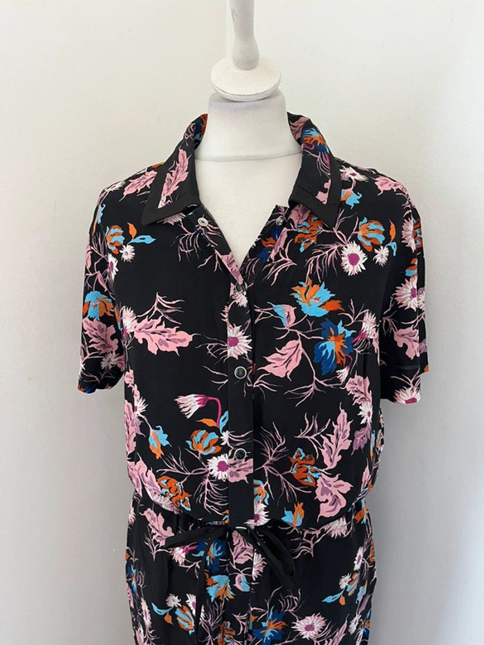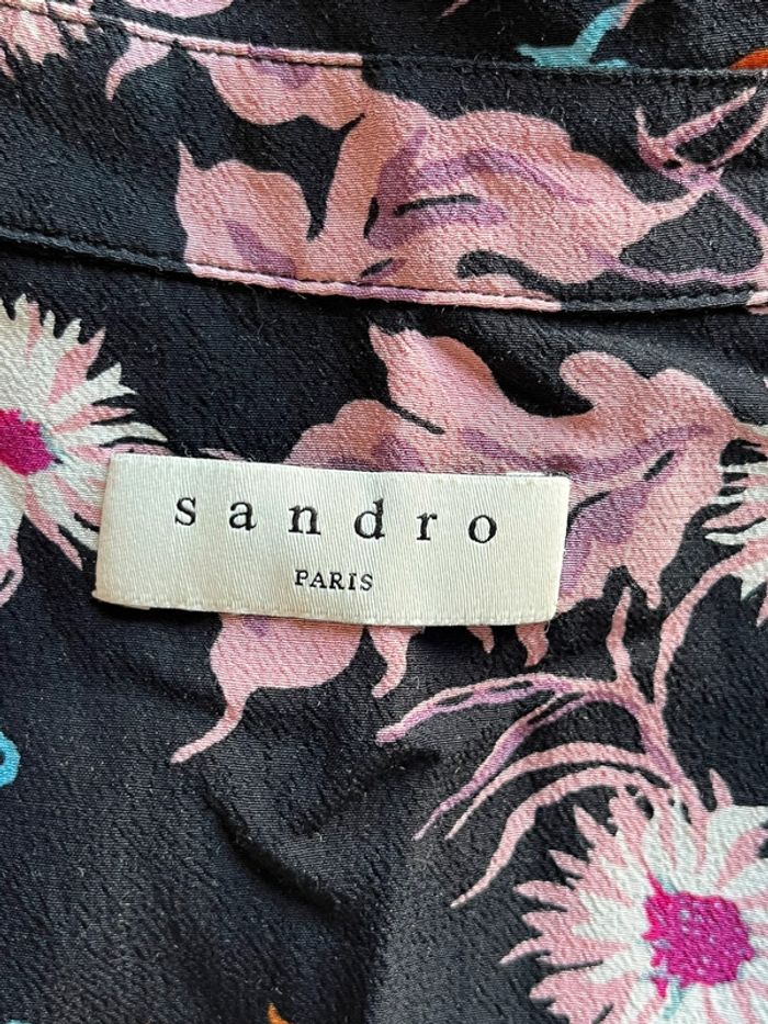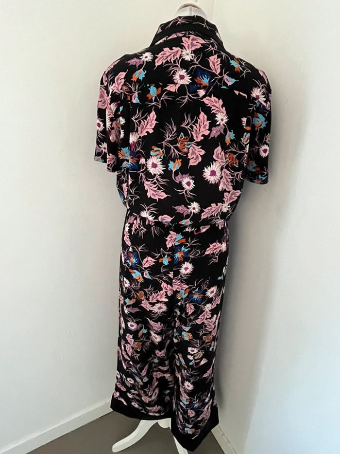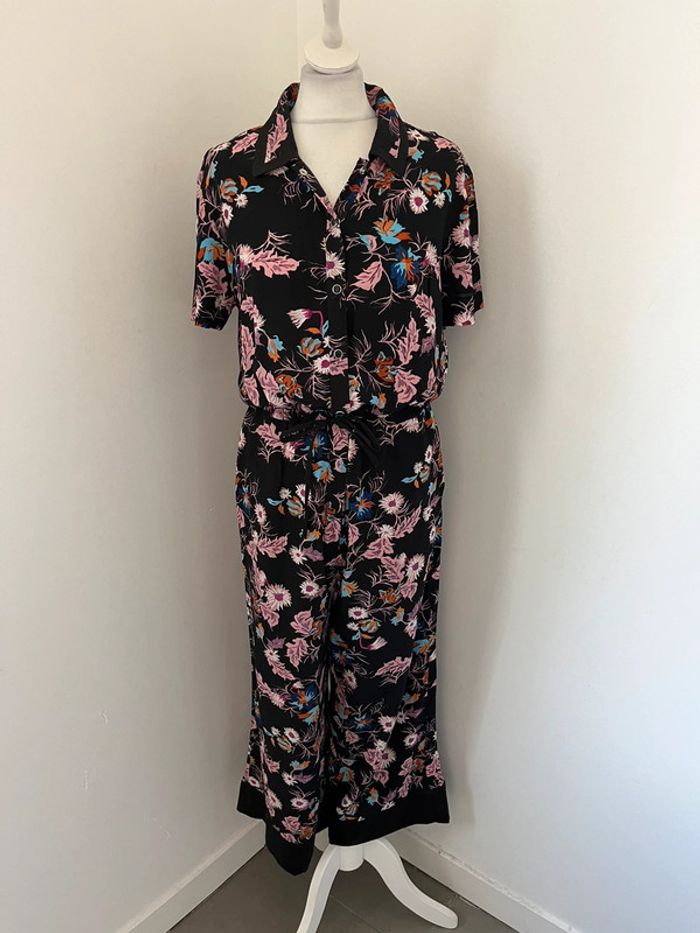 Vends jolie combinaison Sandro Noire à fleurs Haut chemise Boutons pressions navrés noirs Bas et bout du col satinés Cintré par un cordon satiné Taille 38 Peu portée #loumathipantalon #loumathisandro #loumathifemmem 🌸 envoi rapide et soigné (Sous 48h ouvrées) 🌸 n’hésitez pas à faire un tour dans mon dressing pour voir mes autres pièces et faire des lots 🌸 n’hésitez pas à vous abonner à mon compte Vinted car j’ajoute des articles régulièrement