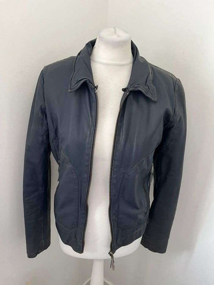 Veste blouson en cuir marine Ikks S - photo numéro 1