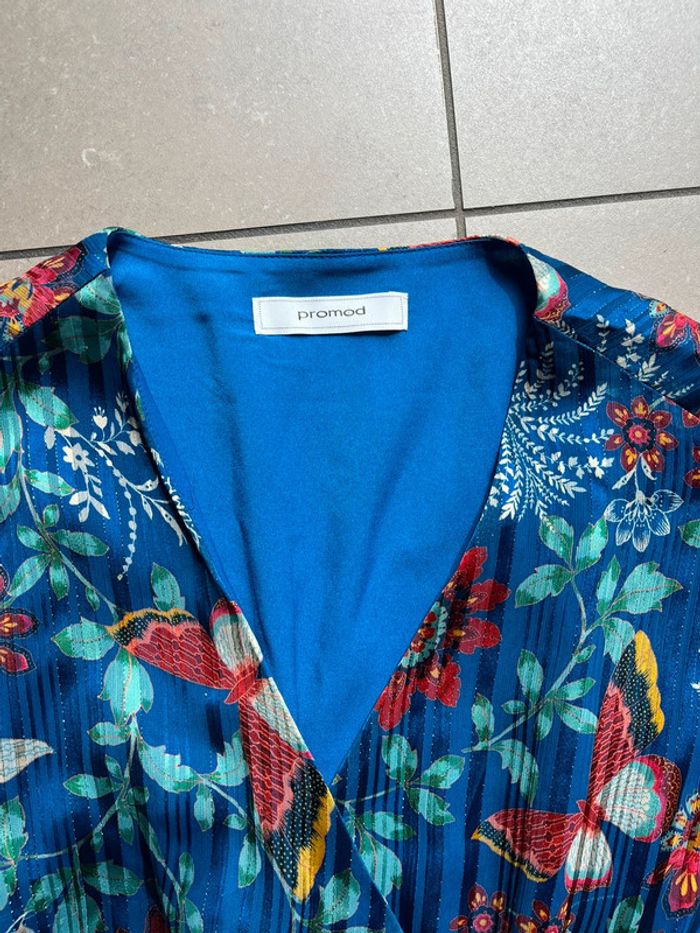 Robe bleue à fleurs Promod S - photo numéro 2