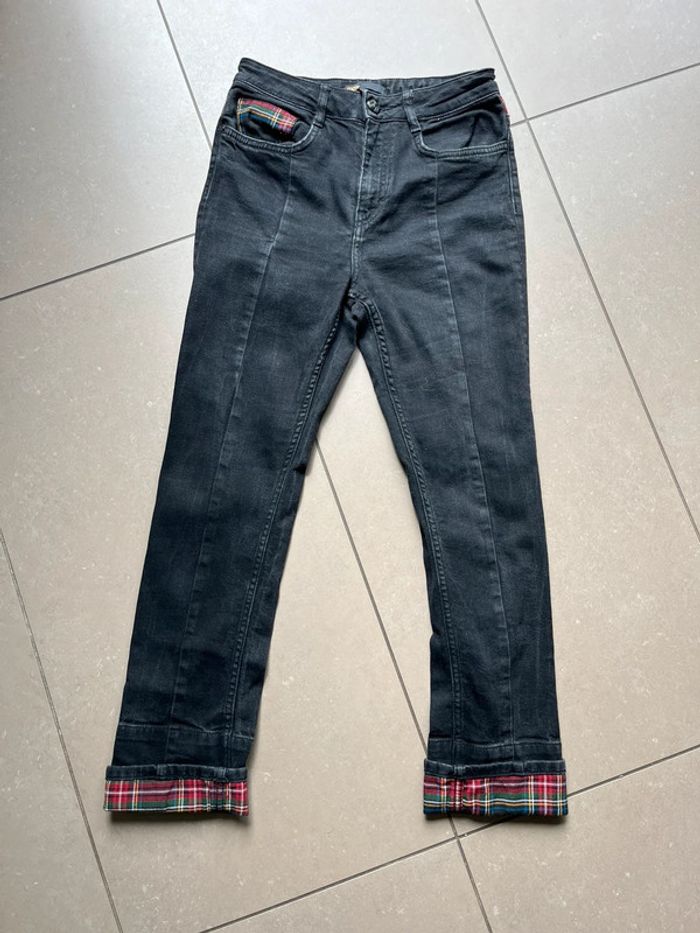Jean gris foncé motif écossais Maje S - photo numéro 1