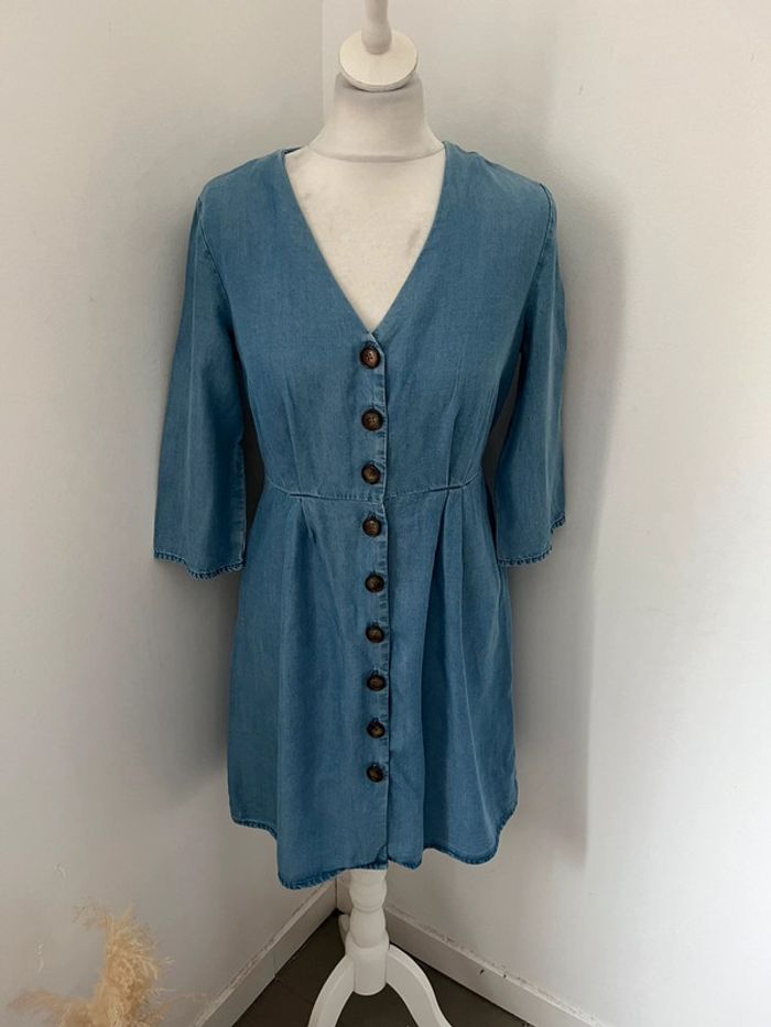 Vends jolie robe effet jean Promod Lyocel Boutonnée avec boutons marron Légèrement cintrée Taille 36 #loumathifemmes #loumathipromod #loumathirobe 🌸 envoi rapide et soigné (Sous 48h ouvrées) 🌸 n’hésitez pas à faire un tour dans mon dressing pour voir mes autres pièces et faire des lots 🌸 n’hésitez pas à vous abonner à mon compte Vinted car j’ajoute des articles régulièrement