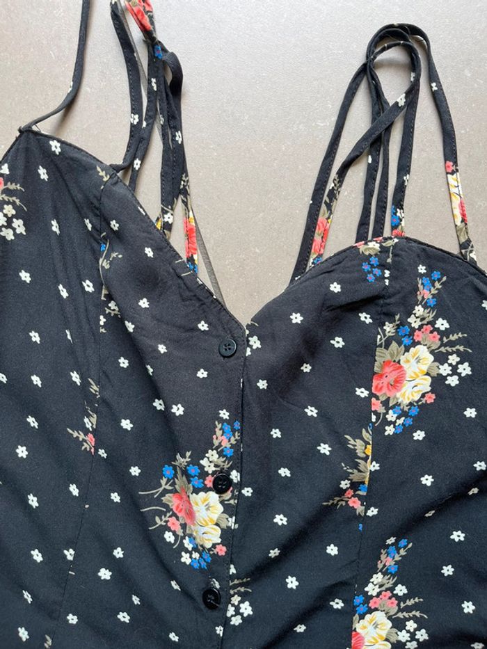 Vends joli combishort à bretelles The Kooples Cintré Noir à fleurs Devant boutonné Dos croisé Taille Xxs sur l’étiquette #loumathikooples #loumathicombishort 🌸 envoi rapide et soigné (Sous 48h ouvrées) 🌸 n’hésitez pas à faire un tour dans mon dressing pour voir mes autres pièces et faire des lots 🌸 n’hésitez pas à vous abonner à mon compte Vinted car j’ajoute des articles régulièrement