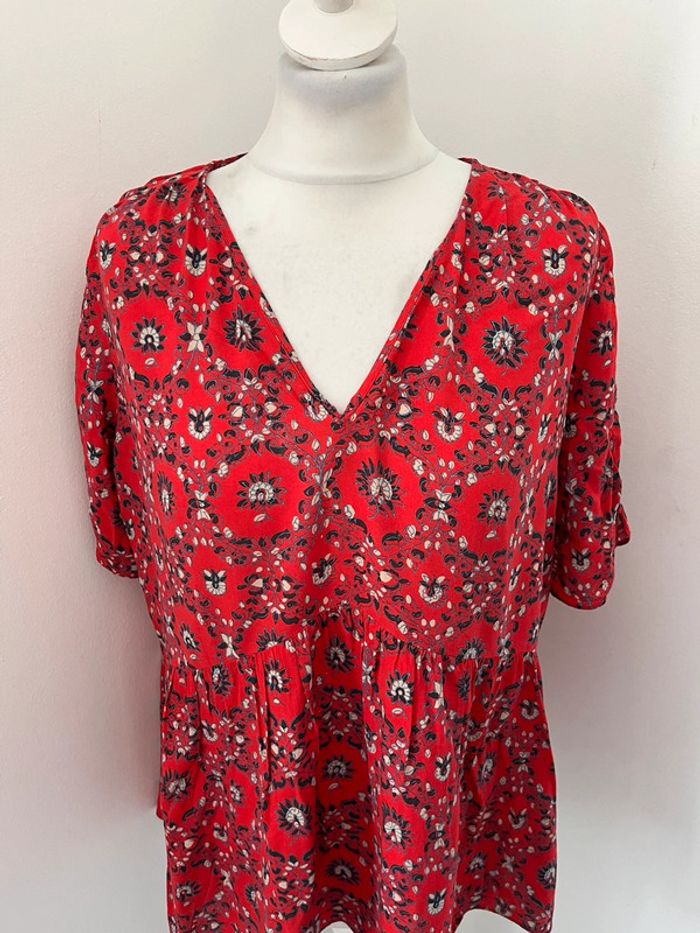 Vends jolie blouse col en V Zapa Rouge à fleurs Taille 1 #loumathifemmes #loumathizapa #loumathiblouse 🌸 envoi rapide et soigné (Sous 48h ouvrées) 🌸 n’hésitez pas à faire un tour dans mon dressing pour voir mes autres pièces 🌸 étant pro, vous ne pouvez pas créer de lot 🌸 n’hésitez pas à vous abonner à mon compte Vinted car j’ajoute des articles régulièrement