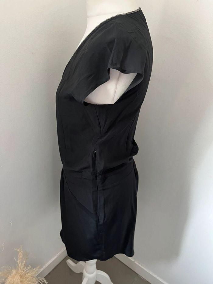 Vends jolie robe en soie Comptoir des cotonniers Col en V avec liseré argenté Noire Légèrement cintrée Doublée Taille 34 #loumathifemmexs #loumathirobe #loumathicomptoircotonniers 🌸 envoi rapide et soigné (Sous 48h ouvrées) 🌸 n’hésitez pas à faire un tour dans mon dressing pour voir mes autres pièces 🌸 étant pro, vous ne pouvez pas créer de lot 🌸 n’hésitez pas à vous abonner à mon compte Vinted car j’ajoute des articles régulièrement